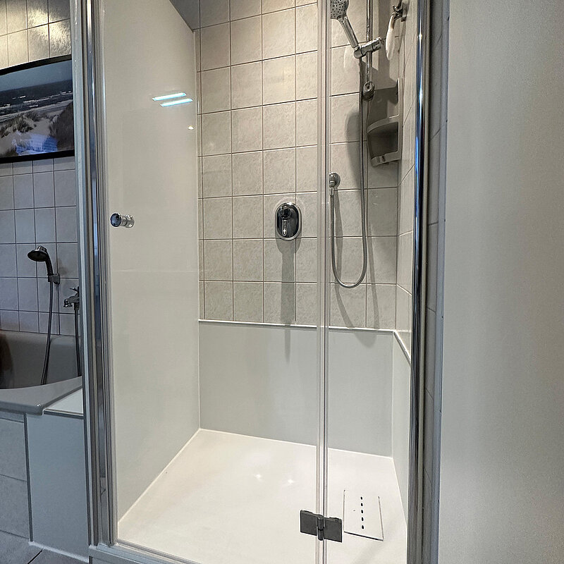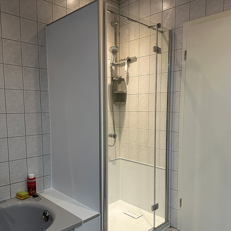 - Die neuen Silikonfugen und die verwendeten Kleber müssen nun nur noch 24 Stunden aushärten. Schon am Abend des nächsten Tages ist ihre neue Duschoase einsatzbereit.