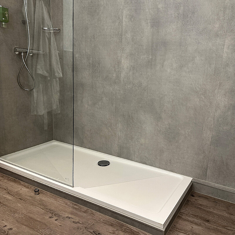 - Die Lieferung und Montage einer fugenlose Wandverkleidung aus hochwertigem COVERMAX RCC inklusiv Badabdichtung, im Bereich der alten Badewanne.