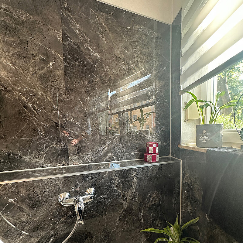 - Die Lieferung und Montage einer fugenlose Wandverkleidung aus hochwertigem COVERMAX RCC inklusiv Badabdichtung, im Bereich der alten Badewanne.