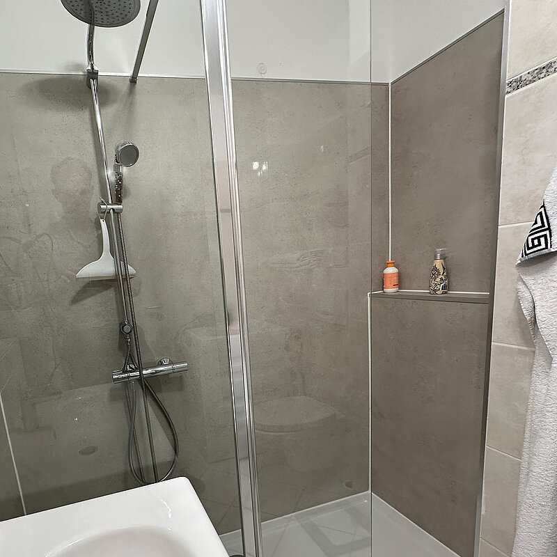 - Die neuen Silikonfugen und die verwendeten Kleber müssen nun nur noch 24 Stunden aushärten. Schon am Abend des nächsten Tages ist ihre neue Duschoase einsatzbereit.