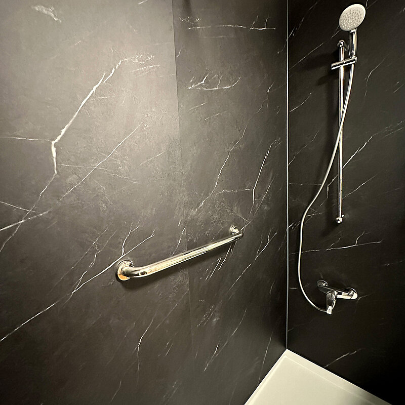 - Die Lieferung und Montage einer fugenlose Wandverkleidung aus hochwertigem COVERMAX RCC inklusiv Badabdichtung, im Bereich der alten Badewanne.